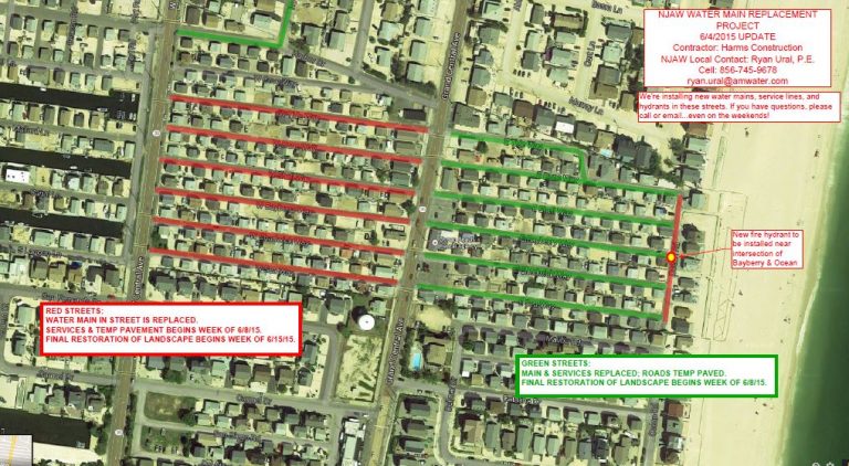 The attached map indicates the current status of work on each street. Jim Mercready, the director of Toms River Fire Prevention, has asked NJAW to install a public fire hydrant near the intersection of Bayberry & Ocean Road. He has been very proactive in identifying areas that do not have fire hydrants in them, and has worked with us to ensure these areas receive hydrants. If you have any questions or concerns about the work, please feel free to call me anytime on my cell (856-745-9678) or email me at ryan.ural@amwater.com.